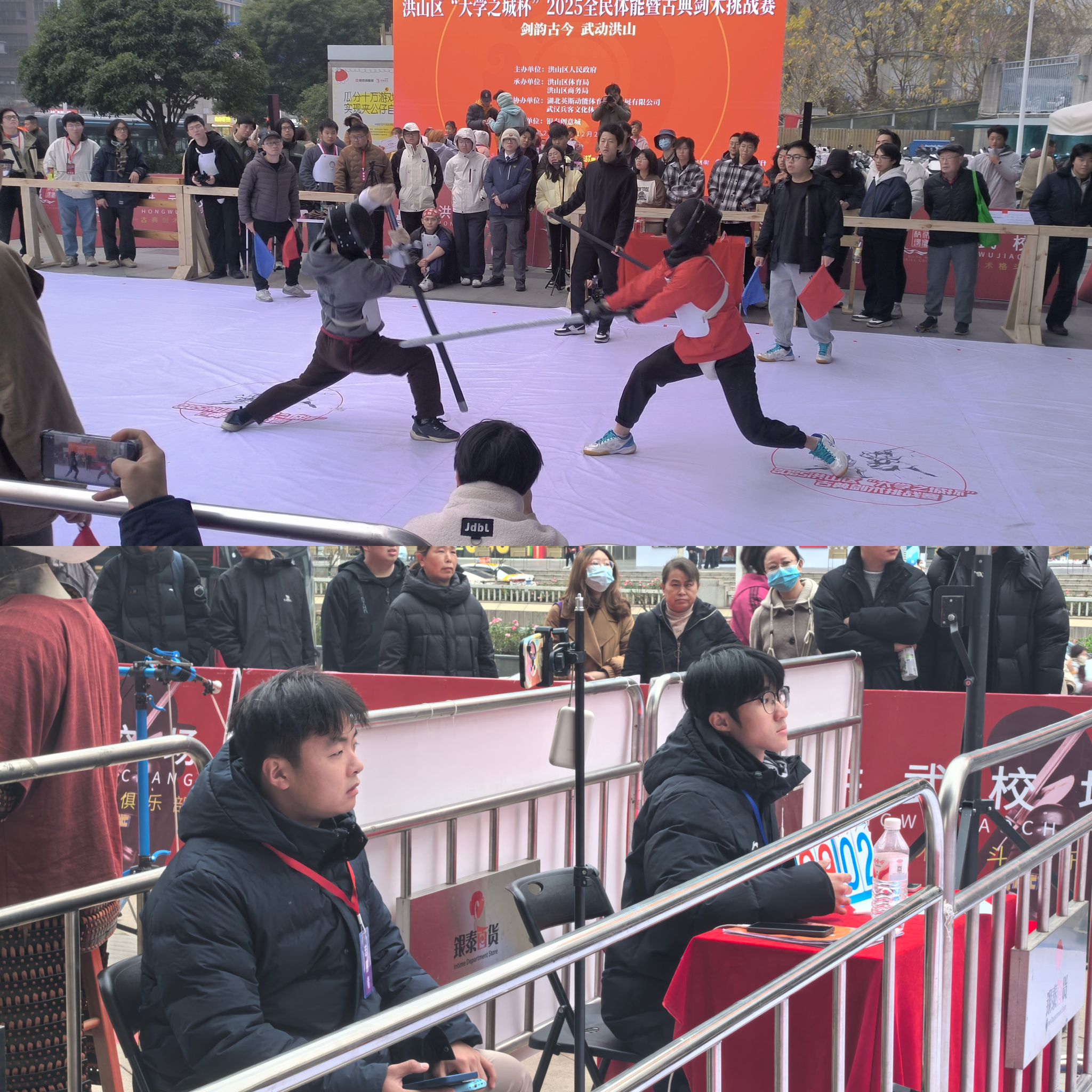 在古典剑术竞技场地,选手们技艺精湛、拼搏激烈,充分彰显了体育精神。志愿者们承担了计时记分、流程协调、秩序维护等多项任务,始终以饱满的热情和认真的态度投入服务,体现了“奉献、友爱、互助、进步”的志愿精神。