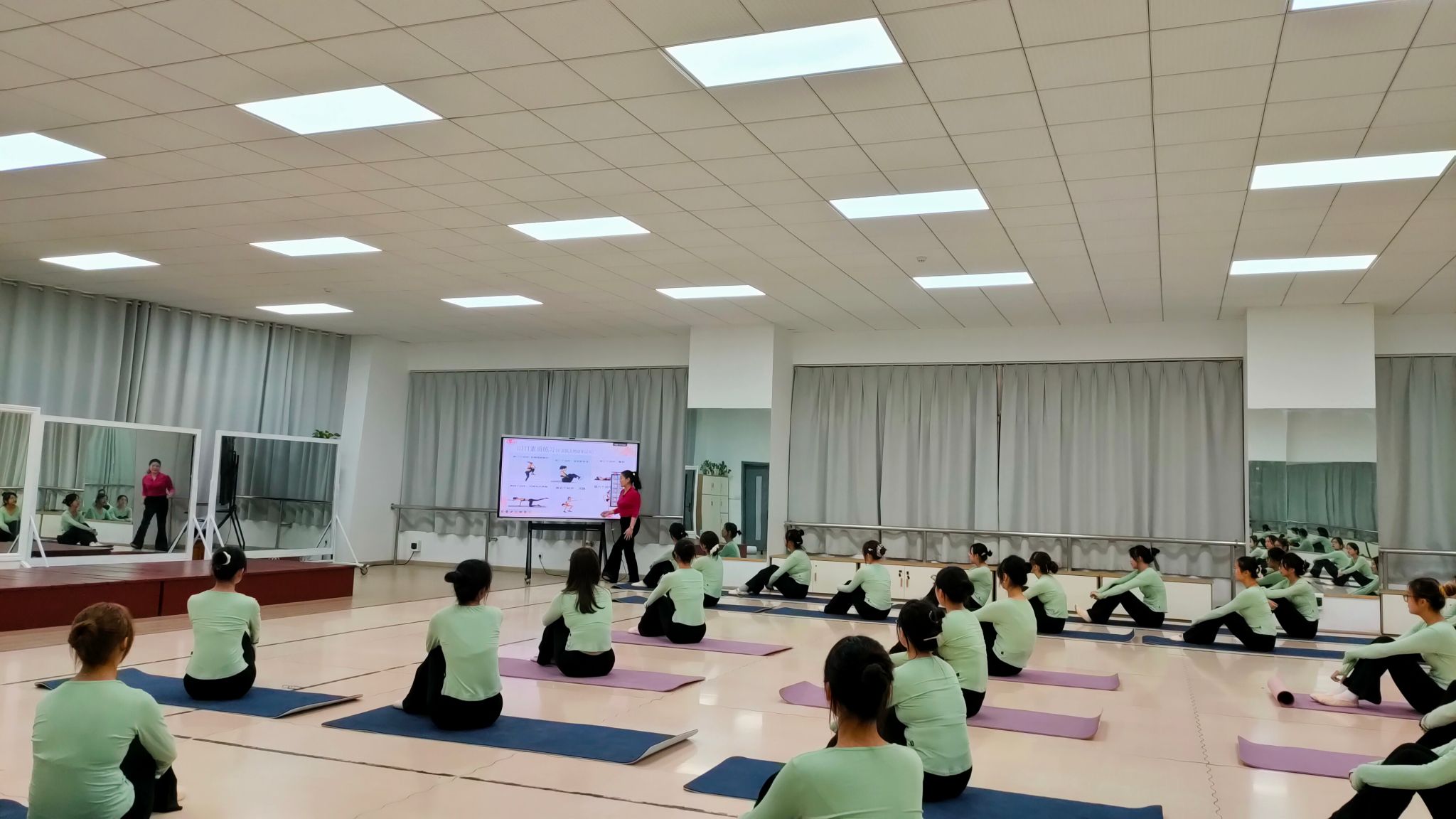 本次课程围绕“形体舞蹈”展开,王立清副教授以一段优雅姿态视频作为课程导入,激发学生学习兴趣,以《我爱大中国》热身舞蹈切入课程内容,带领学生进行形体训练,结合《月朦胧鸟朦胧》形体舞完整示范,深入剖析舞蹈动作的韵律美感,并结合HIIT素质训练,增强学生体能。课程通过问题引导与动作示范、图示总结与可视化呈现、案例解惑与练习调整等方式,帮助学生们将课堂所学转化为身体实践。