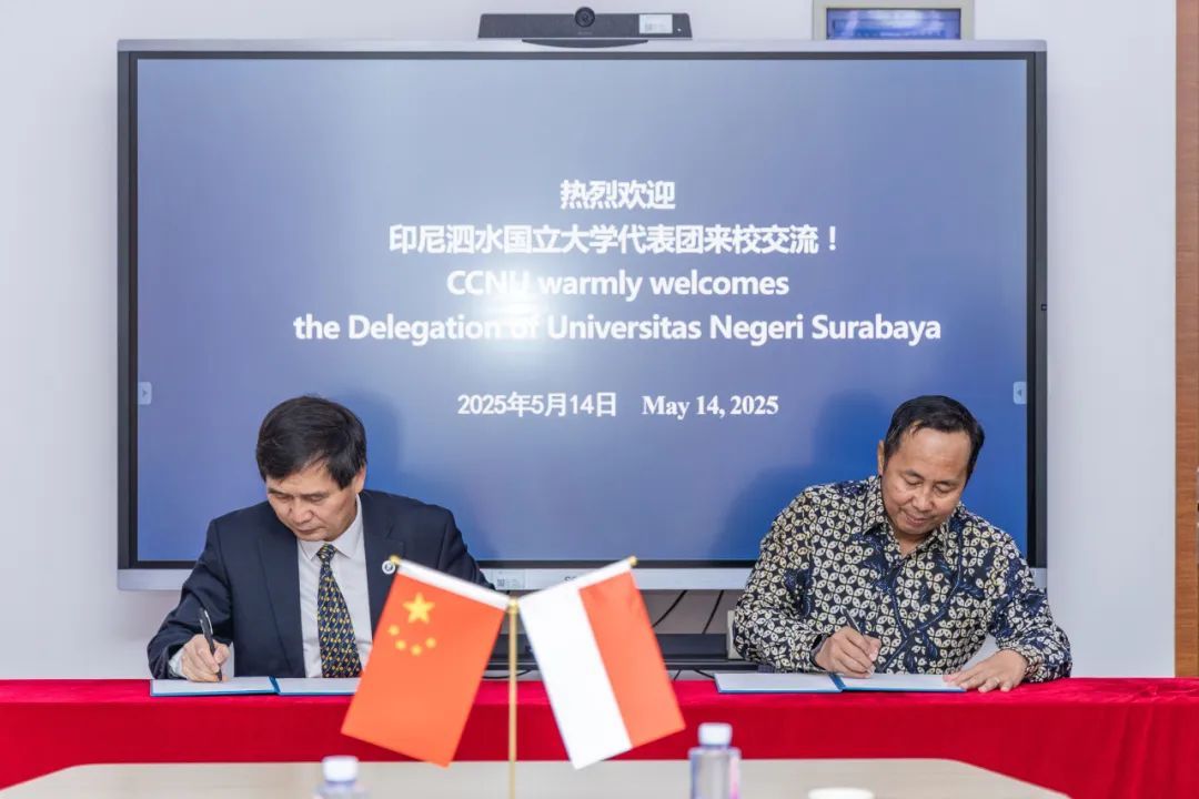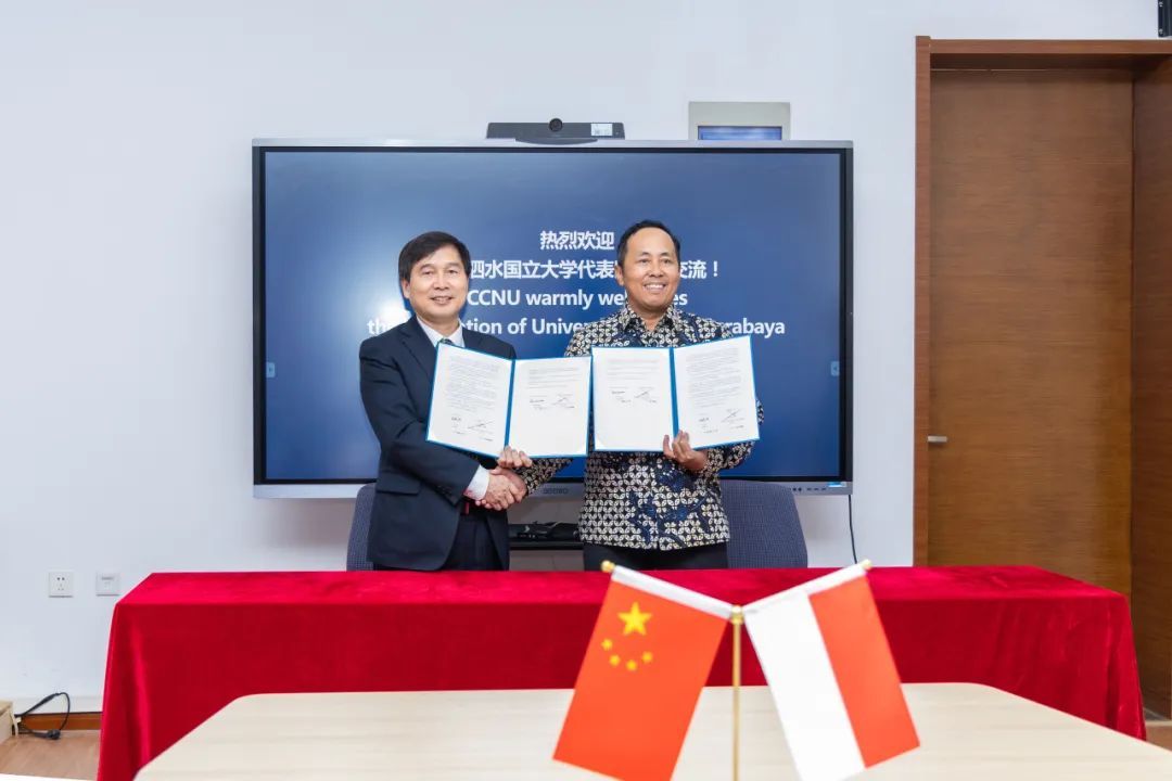 5月14日,华中师范大学与印尼泗水国立大学“2+2”合作办学协议签约仪式在南湖综合楼举行,印尼泗水国立大学副校长Dwi Cahyo Kartiko、孔子学院院长Beni Setiawan,华中师范大学副校长任友洲、体育学院院长胡庆山、国际合作部副部长周波、体育学院副院长陈元欣、国际合作部项目主管杨巍等出席。仪式由周波主持。