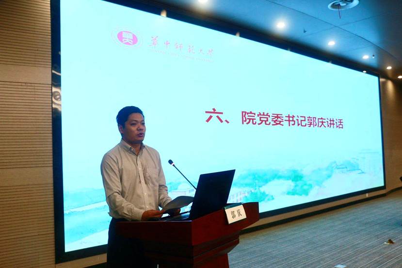 会议进行到第六项,院党委书记郭庆讲话。郭庆书记强调在体育强国的建设中,必须深化体教融合,将体育的育人价值赋予更大的内涵,更全面地发展和培养新一代人才。华师体院学子要勇当新时代的有志青年,坚持修身立德踏实做人,深刻意识到青春即为奋斗,勉励同学们在最美的年纪为实现中国梦奉献自己的力量。