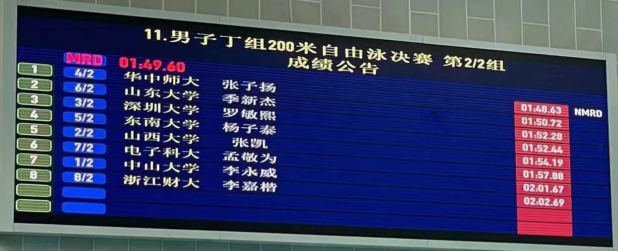 3月30日,我校体育学院2020级本科生张子扬,获得男子丁组(专业组)200米自由泳冠。并打破尘封12年的赛会纪录。