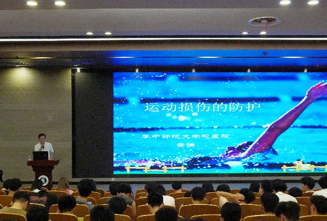 最后,黄谦向学生们讲解了校外就医流程。并提醒大家要在学习和日常体育运动中着合适的运动服装,加强四肢锻炼以确保肌肉力量的平衡,活动前充分热身,活动后做好拉伸放松,有规律的进行体育锻炼,尽可能地保护自己免受运动性损伤。