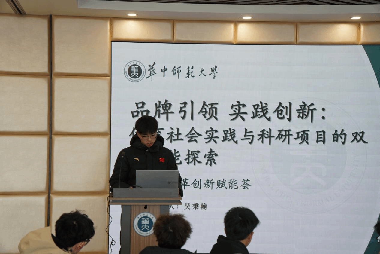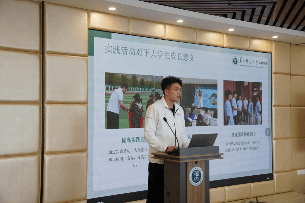 随后,体育学院团委(学生)副书记吴秉翰围绕体育社会实践与科研项目的双向赋能展开,分享了选题、调研及两者与竞赛融合的经验。吴秉翰从双向赋能的意义、科学选题的角度、调研经验与科研与竞赛的融合四个方面讲解了对于体育社会实践与科研项目的双向赋能探索,使实践驱动科研选题,科研的成果能够转化,从而赋能实现这个实践的继续进一步的创新。