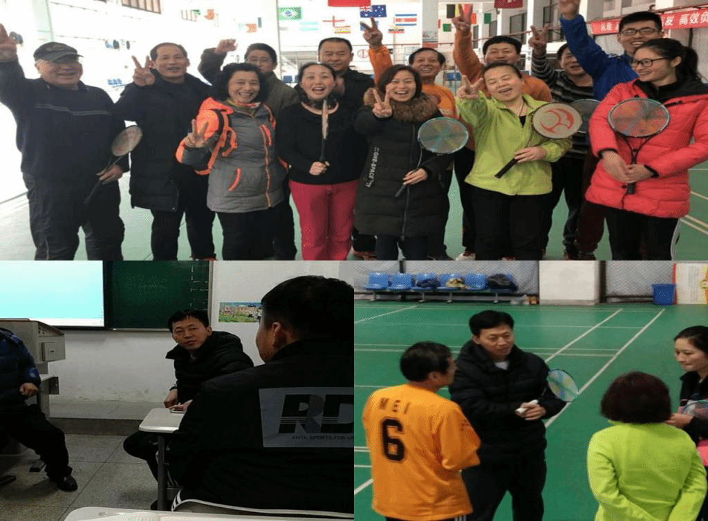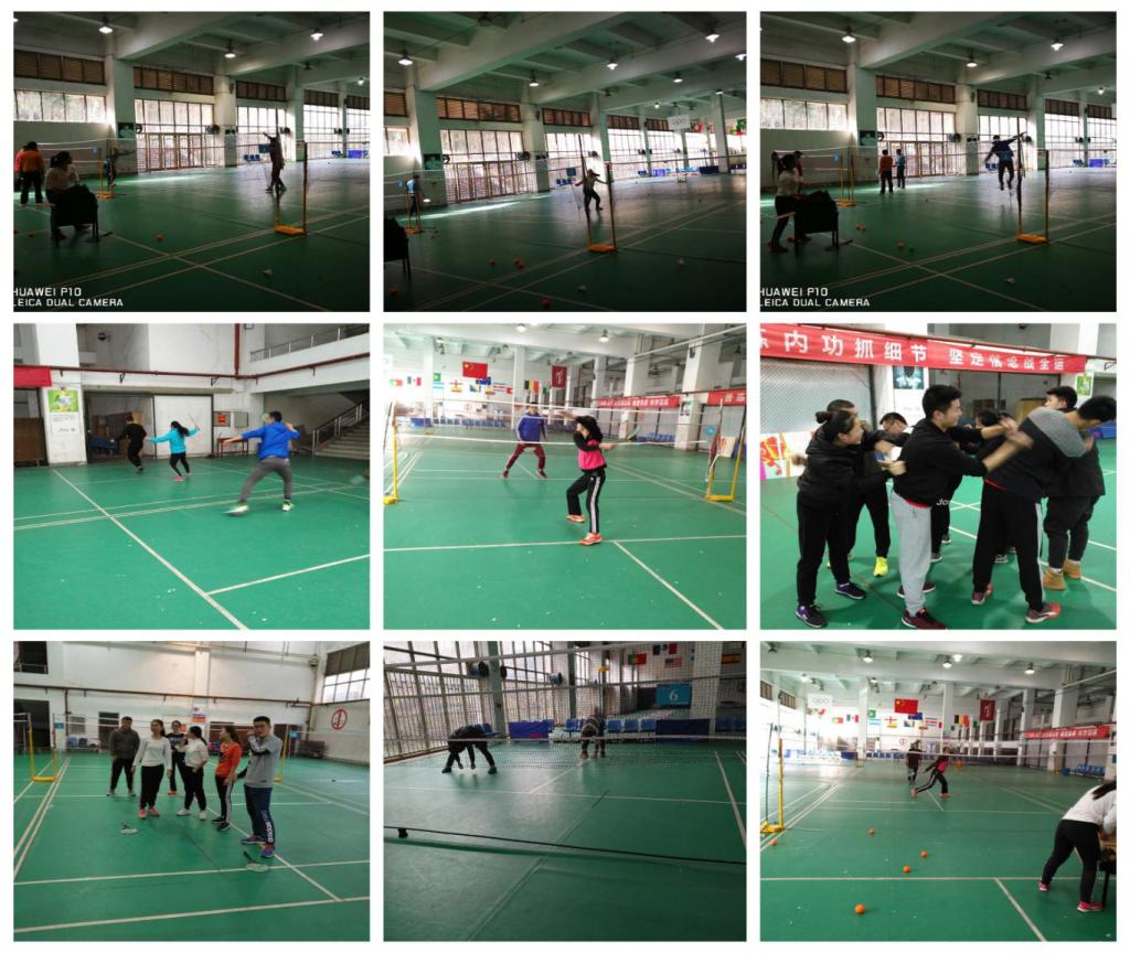 俗话说冬练三九,夏练三伏。为了提高运动员训练成绩和竞技能力,李老师充分利用寒假间期,自2018年1月15日至2月4日,有计划的组织队员进行冬季训练。这一举措得到武汉市体育局和学院领导的大力支持,积极帮助落实训练场地,训练器材,为队员们训练打了一针强心剂。集训初期,面对期末考试压力,队员在训练之余抓紧复习,保证训练和学习两不误。同时队员也丝毫不受雪窖冰天、雪虐风饕的恶劣气候影响,一如既往地从南湖宿舍区跋涉到佑铭体育馆羽毛球馆参加训练。训练期间,李老师在兼顾工作和家庭的同时,从不缺席每一次训练,尽心尽力指导每一个队员的技术动作。并且与队员们分享训练的喜怒哀乐,经常同队员们“打成一片”,李老师又说又示范,四十多岁的他与年轻的队员们是一样的训练量。半个月集训的日子里,队员们每天都是从布置训练场地,队员轮流组织准备活动,练习柔力球基本技术动作,学习新的技术动作,训练总结,放松活动一套完整的训练程序,本次集训主要是采用训练与比赛相结合的形式。