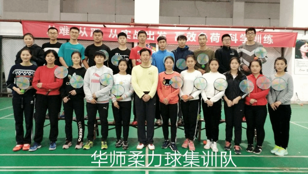 华中师范大学校柔力球队将代表武汉市参加2018年4月举办的湖北省运动会,从2017年9月开始,在体育学院李恩荆老师,助理教练董辉和汪毅老师的带领下,从炎热九月到寒冬腊月坚持刻苦训练。校柔力球队是一支身轻体健、朝气蓬勃的学生队伍,其成员主要由本科生和研究生组成。队伍中除了大部分体育学院的学生,也不乏其他院系的学生,比如,音乐学院艺术类学生、心理学院学生也参与其中,她们在没有任何运动训练经验的条件下攻坚克难,积极参与柔力球队的训练,认真完成训练任务,她们标准的技术动作和坚韧的精神让体育专业的队员们都交口称赞。李恩荆老师虽然知道晚上带领队员训练会影响家人和孩子的生活学习,但因为考虑到队员们的课业负担,只能利用每周一、三、五晚上和周六下午的课余时间组织集中训练。凭着对柔力球的热爱,队员在克服没有场地、没有经费的艰苦条件下,数月如一日般的坚持着。一个学期下来,队员们无论是在基本技术还是战术意识方面都有着质的飞跃。