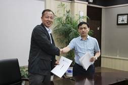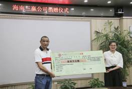 随后,双方代表唐惠良、黄爱峰签署捐赠协议,海南三赢公司代表吴丽莎向华中师范大学女子排球队主教练刘买如赠送捐赠支票,覃红向海南三赢公司代表唐惠良颁发捐赠证书、奖牌。