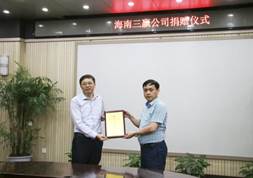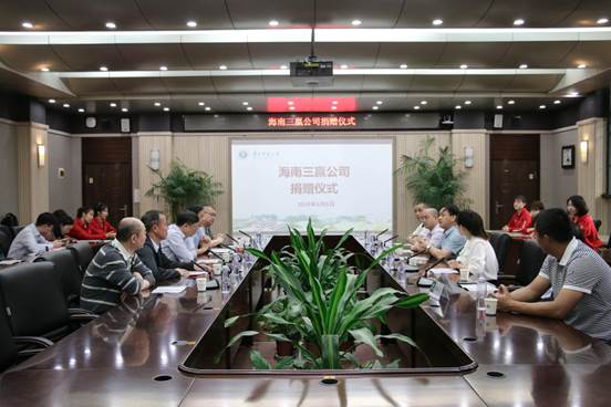 (通讯员 张一弘)5月5日上午,海南三赢公司捐赠仪式于我校行政楼一楼会议室举行。海南三赢公司董事长、海南校友会副会长唐惠良,海南三赢(广州)品牌运营与投标中心主任文在庆,海南三赢(武汉)品牌运营与投标中心主任吴丽莎,校党委副书记覃红,体育学院党委书记郭庆,体育学院副院长黄爱峰、侯斌,教师徐成立教授、刘聪副教授、刘买如副教授等出席本次仪式。仪式由郭庆主持。