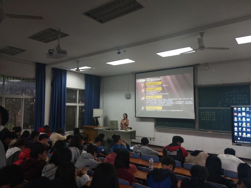 来自新闻传播学院2017级的施佳丽同学作为此次宣讲的“明德小导师”,从自我认知、定位与养成、规划与发展三个方面,向同学们分析了大一到大四不同阶段所面临到的学业问题,引导同学们如何从自身和环境、机遇与平台、自我认知与行为养成来规划自己不同阶段的大学生活。她具体讲到,对自我的再认知有助于帮助自身了解自己的性格特点、兴趣方向、能力长短以及价值观念,在规划自己的大学生活上同学们要善于利用学校提供的平台,通过兴趣导向结合实践发展,综合培养自身的能力素质,将学业规划合理的分割成不同阶段,在每一个阶段针对性的开展规划内容。
