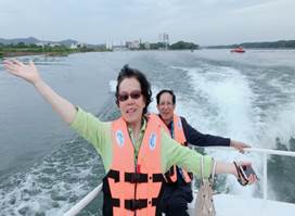 随后老师们在基地解放军的带领下来到木兰湖体验冲锋艇项目。老师们惊叹冲锋艇的速度与激情、沉迷木兰湖辽阔水域的自然风景,跟着冲锋艇徜徉在碧波之上。