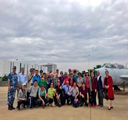 接待老师们的是基地负责人、体育学院优秀校友86级学生耿洪健大校。他就海工大木兰湖辖区试训基地迎军运会的工作情况以及比赛场地向老师们做了详细的介绍,并带领老师们在综合保障大楼楼顶俯瞰海工大木兰湖校区的全景。一路上,大家结伴而行,不时停下脚步合影留念,一派欢乐愉快的景象。