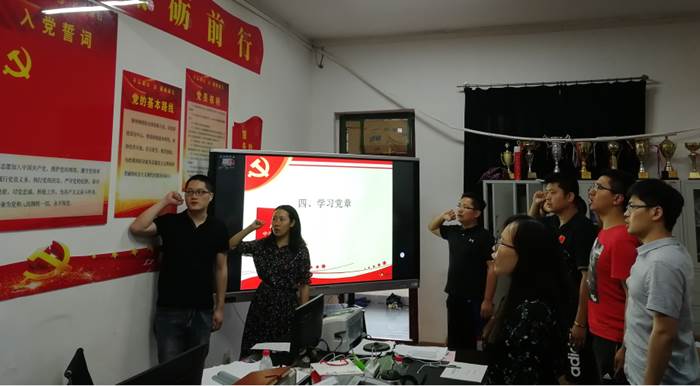 活动第一项,由杨秦同志通报党员到会及党费交纳情况。活动第二项,集体奏唱国歌与重温入党誓词。