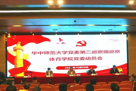 根据学校党委关于巡察工作的统一部署,2020年10月9号下午,校党委第二巡察组巡察体育学院党委动员会在南湖综合楼一楼报告厅召开。校党委第二巡察组组长聂耀华、副组长夏守信、巡察组成员戴文波、王海、王坤、刘枫、巡察工作办公室主任王旺胜以及体育学院领导班子全体成员、在汉全体教职工、离退休教职工和学生代表参加会议。动员会由体育学院院长王斌主持。