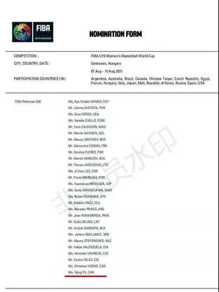 ▲我院青年教师余怡菁被选派执裁U19女篮世界杯文件