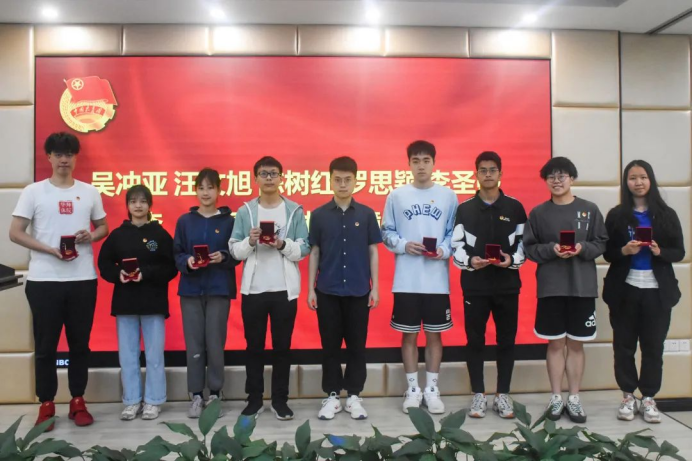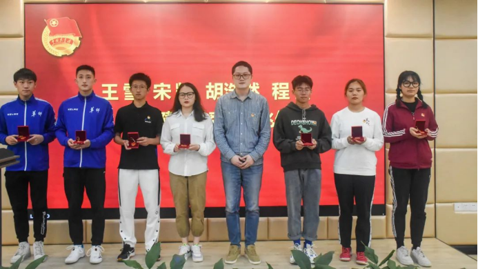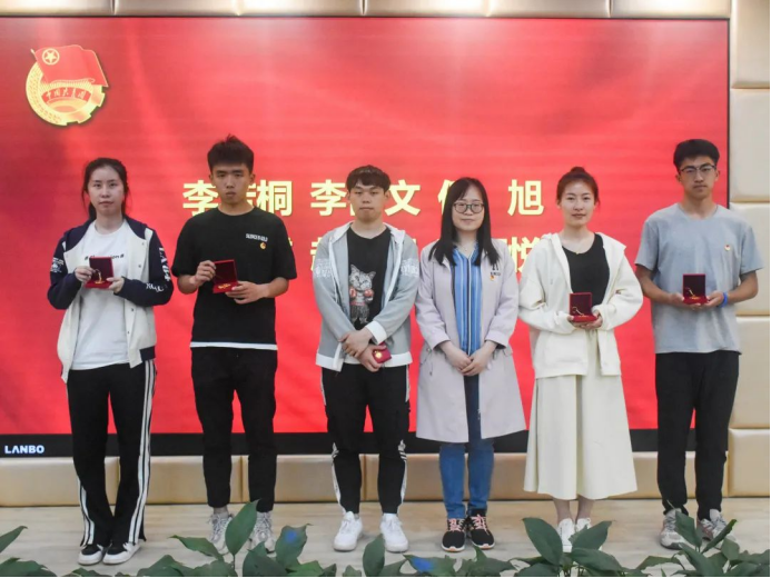 ▲卢俊霖与校级“优秀团支部”的班级代表合影