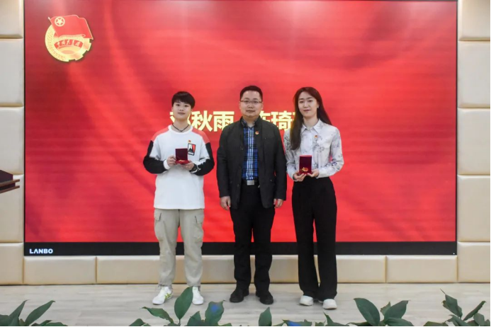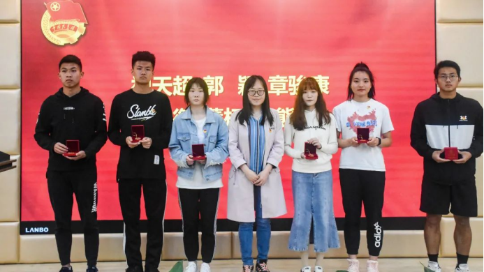 院团委副书记冯照为校级"优秀共青团干部”颁奖。