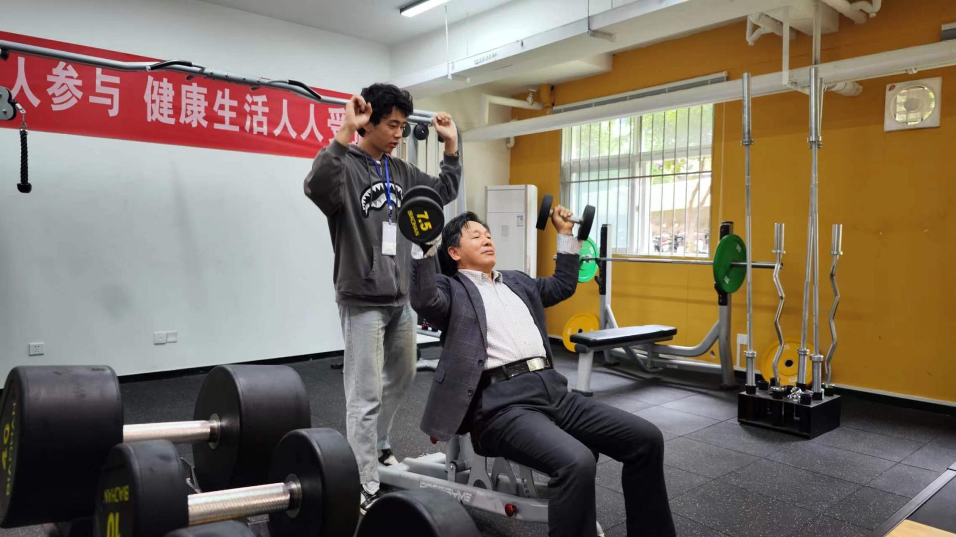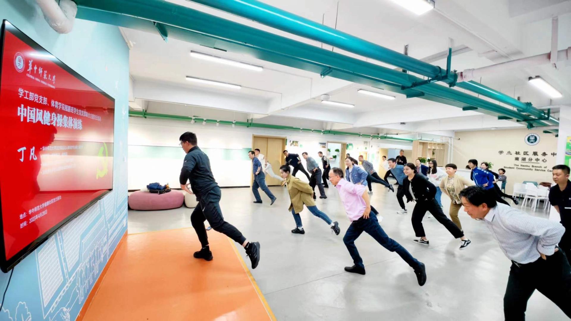 随后,参加联合主题党日活动的师生共同参观了社区力量房、康复室和谈心室。体育学院党委副书记高尚、南湖社区辅导员对社区建设情况和“健康”特色体验项目进行介绍。全体师生体验了中国风健身操集体演练、运动康复公益问诊、力量房器械健身以及动态平衡测试(YBT)等社区项目。
