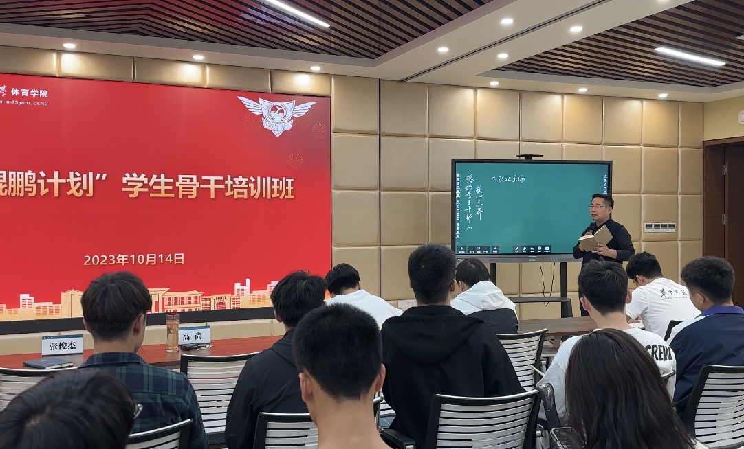 (通讯员 王庆乐)为学习贯彻习近平总书记关于青年工作的重要思想,提高学院团学骨干综合素养,10月14日,体育学院在南湖综合楼N9115举办“鲲鹏计划”2023年学生骨干培训班,院党委副书记高尚出席并授课,院团委副书记、2023级辅导员张俊杰,校第24届研究生支教团团长李瑞浩,辅导员彭媛,院学生会前主席薛爽及学院全体团学骨干参加。院团委书记张俊仓主持开班仪式。