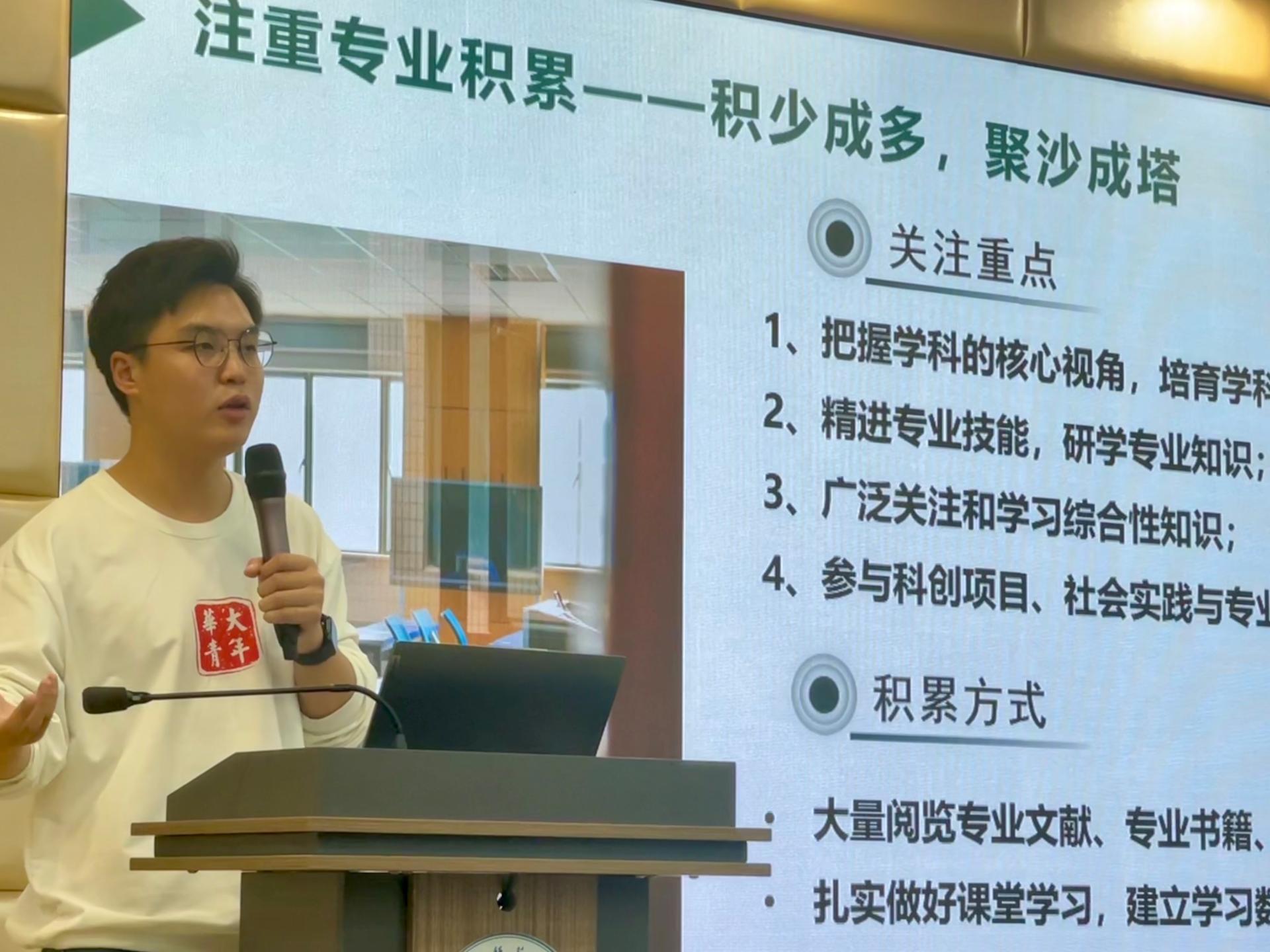 培训班上,李瑞浩结合学生干部及支教工作经历,从学生工作方法及要点、学生工作情怀、学生骨干职责以及学生工作常见的问题等方面进行概括;彭媛以《我在“中国之家”的故事》为题,分享了在杭州第19届亚运会中国之家接待工作的经历;薛爽从明确定位、增强本领、争做“四有”三个方面讲述如何成为一名优秀的学生骨干。