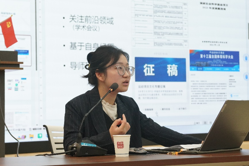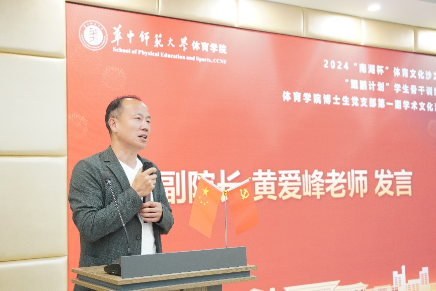 王健教授对本次活动提出殷切期望,他指出活动主题申博和写作两个概念之间存在内在逻辑性,其根本落脚点在于提升学生的科研能力,作为华师体育人不仅要掌握熟练的体育教学技能,还必须能够通过文字将自己的思想准确表达,希望未来同学们积极投身科研活动,争做追求卓越的新时代华师体育人。黄爱峰教授表示,希望博士生党支部持续开展好系列活动,形成党建与业务相融相促的局面,充分认识体育事业的重要性与基础性,立足自身科研工作,积极申报科研项目,促进成果转化。