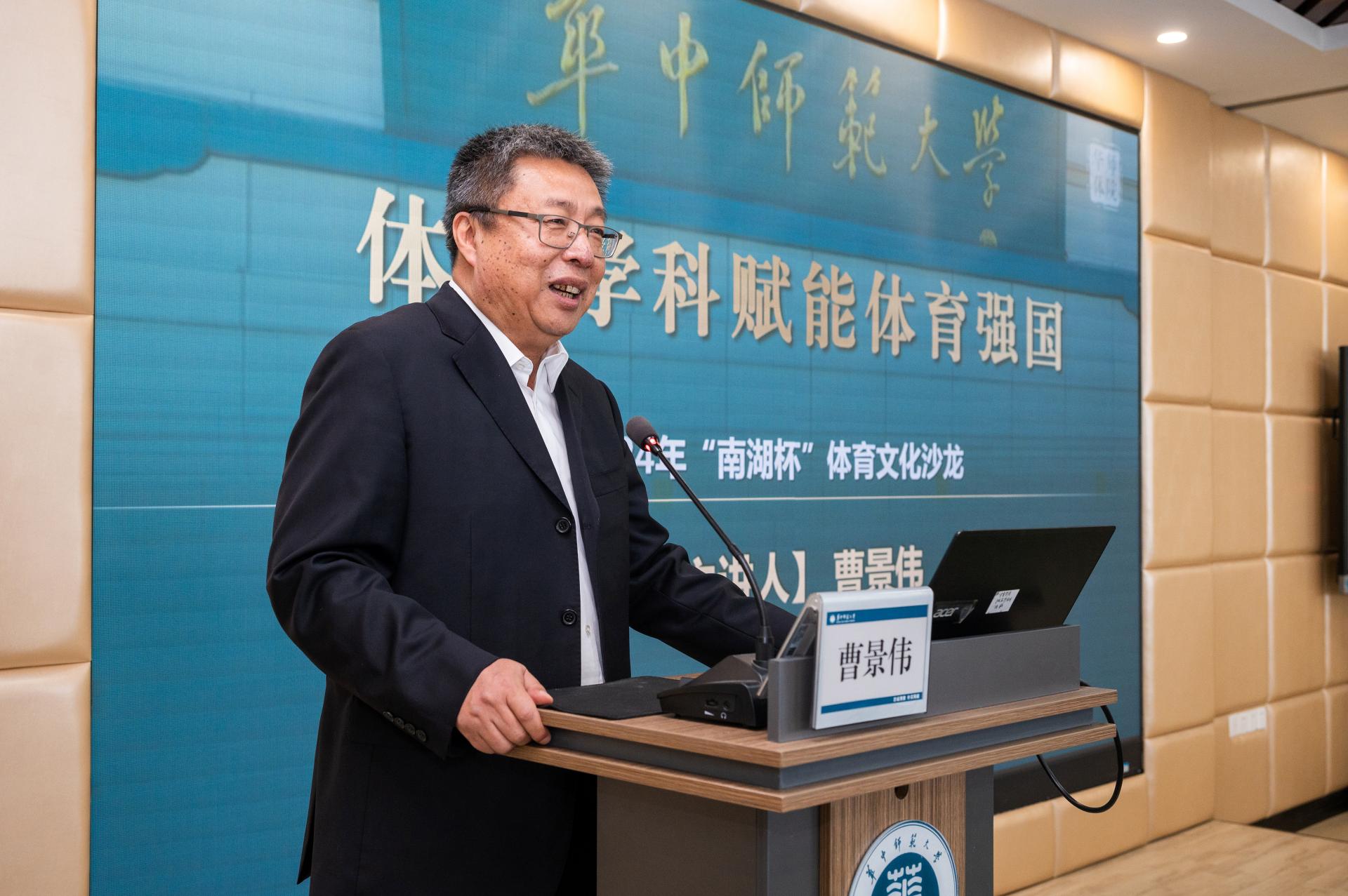 (通讯员 张俊仓)11月8日,国家体育总局体育科学研究所所长、党委书记,中国体育科学学会秘书长、党委书记、理事会副理事长曹景伟做客“南湖杯”体育文化沙龙,以《体育学科赋能体育强国》为题作报告,并与体育学院师生进行交流,国家体育总局体育科学研究所体育社会科学研究中心副主任王富百慧,国家体育总局体育科学研究所科技书刊部副主任张雷,体育学院班子成员、教师代表、学生代表70余人参加活动。体育学院党委书记王东爽主持活动。