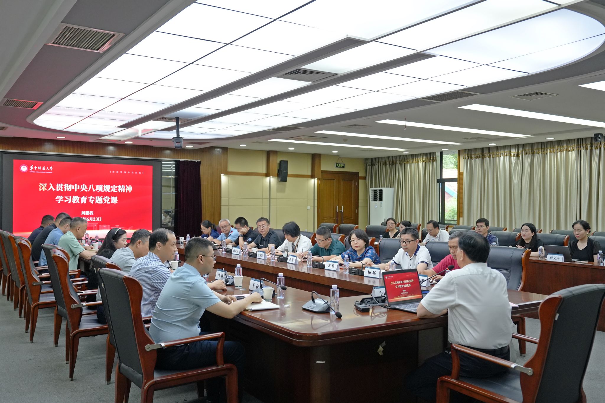 周鹏程副校长围绕中央八项规定和中央八项规定精神的实质和内涵、深入贯彻中央八项规定精神学习教育“为何学”“怎样学”“如何做”展开授课,并对教育领域典型负面案例进行剖析。