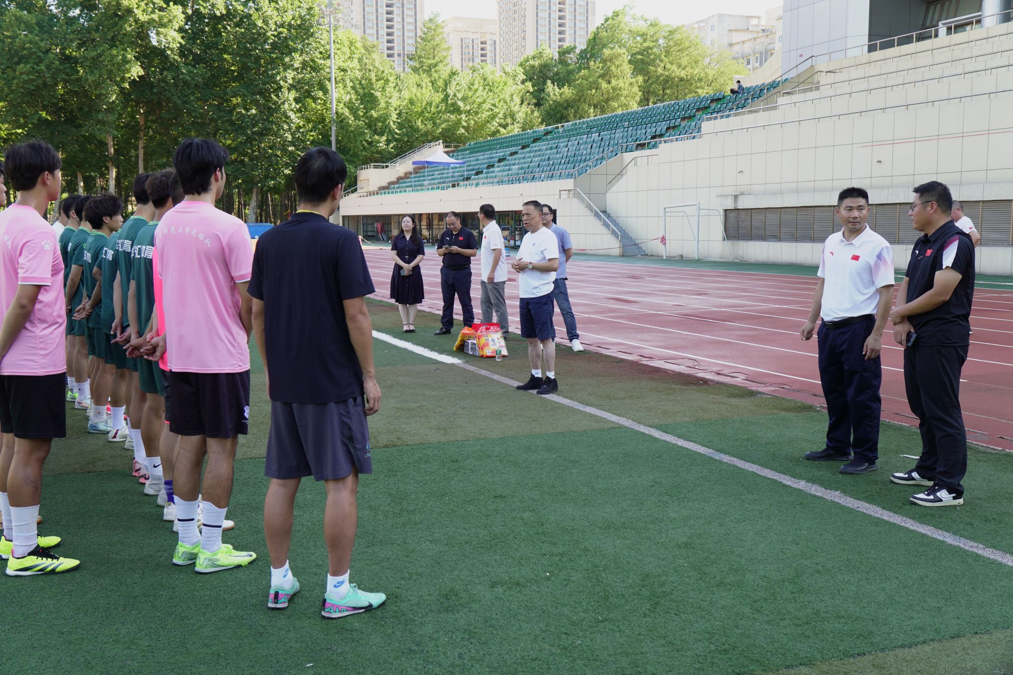 王东爽、胡庆山一行先后到南湖体育馆、南湖二栋学生宿舍、佑铭田径场、乒羽中心等地看望慰问暑期在校训练的女排、男篮、女篮、男足、羽毛球等运动队师生以及留校学习学生,了解同学们的训练、学习和生活情况,询问各运动队备赛进度和训练保障需求。