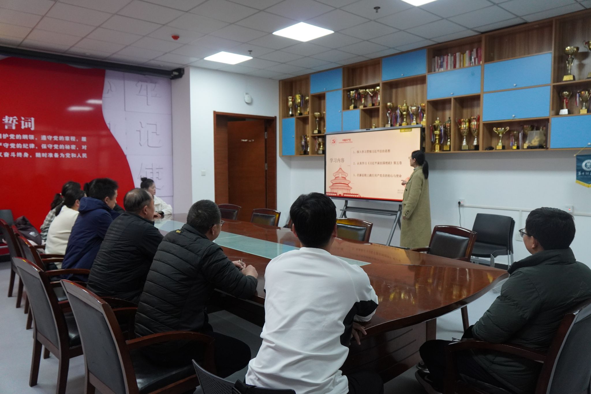 活动第一阶段,支部书记鲁长芬组织全体党员进行12月主题党日活动理论学习,系统深入学习了习近平法治思想、认真学习了《习近平谈治国理政》第五卷内容。